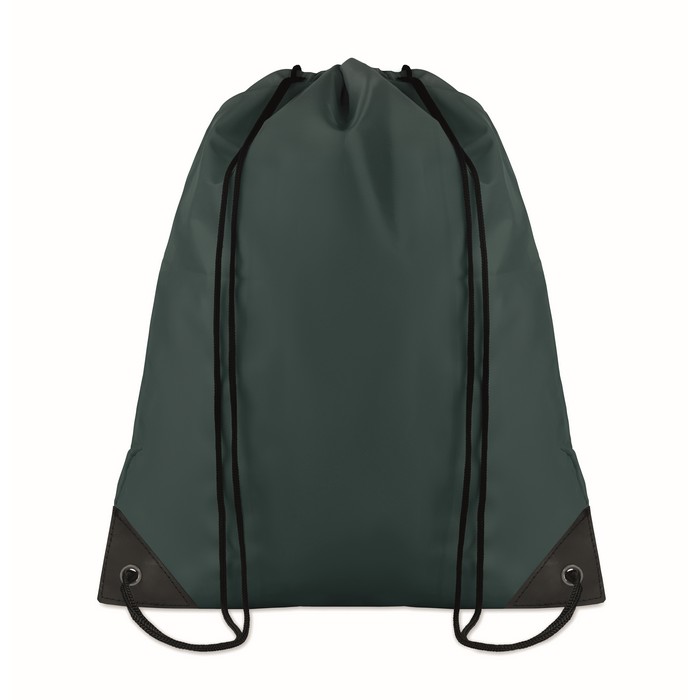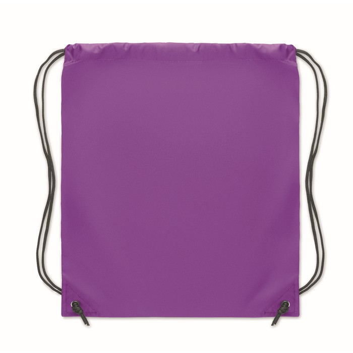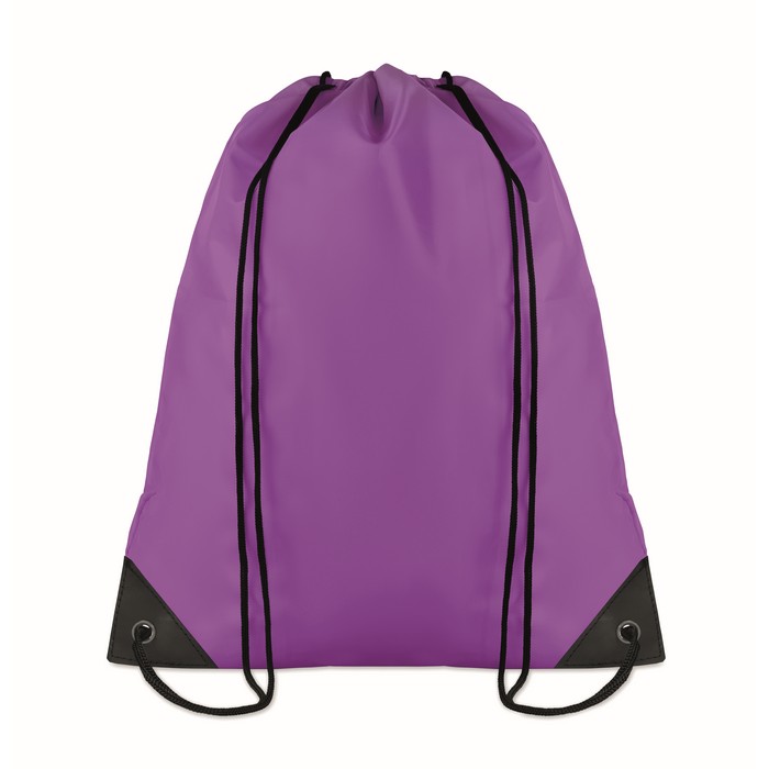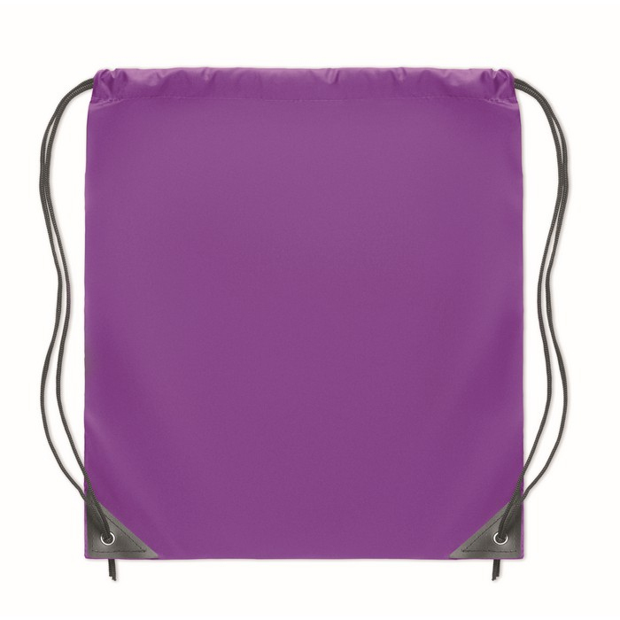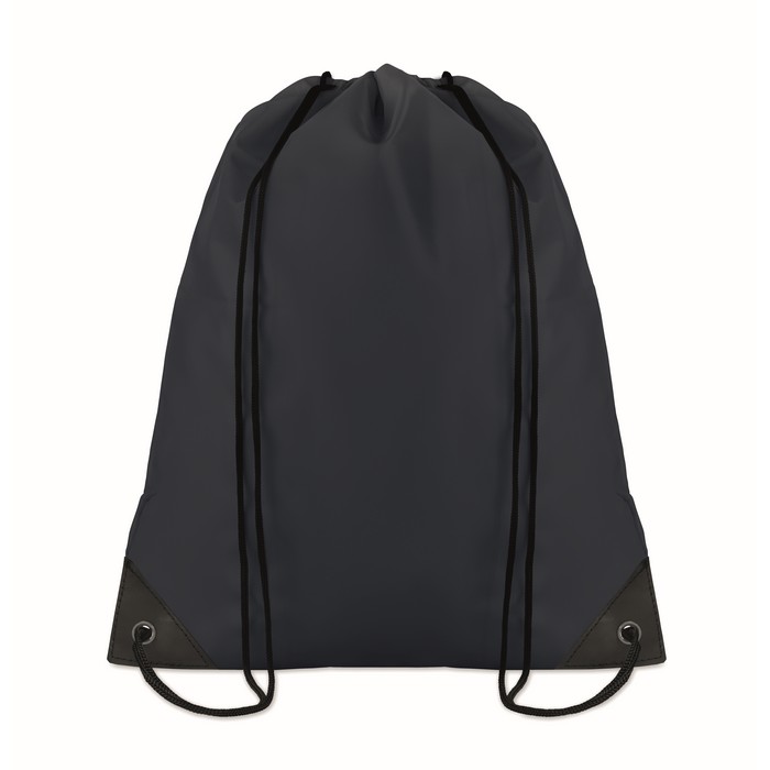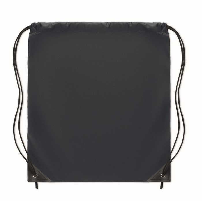 - As mochilas de cordas tipo saco são muito populares dado que são confortáveis, práticas e leves. São ideais para se deslocar pela cidade ou mesmo em viagens. Este modelo de mochila de cordas personalizada barata é fabricado em poliéster 190T e pode ser personalizado com o logótipo da sua empresa ao melhor preço. Estas mochilas tipo saco têm os cantos inferiores reforçados com couro sintético de cor preta na parte da frente, com um suporte têxtil na parte de trás e com um aro metálico pelo qual passam as cordas. Isto ajuda a prevenir que o produto se deforme ou se rasgue por esta zona.