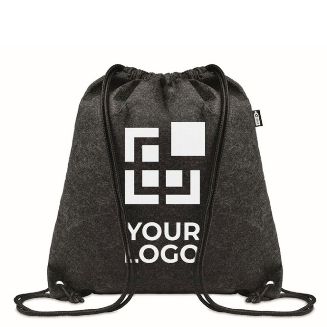 Mochila com cordão em feltro rPET com cantos rígidos.