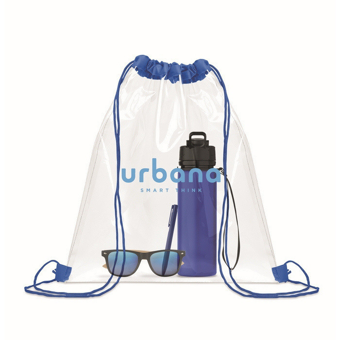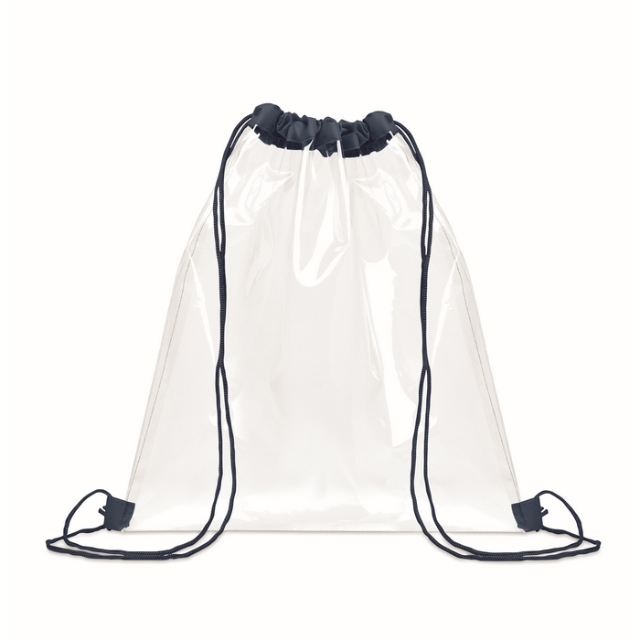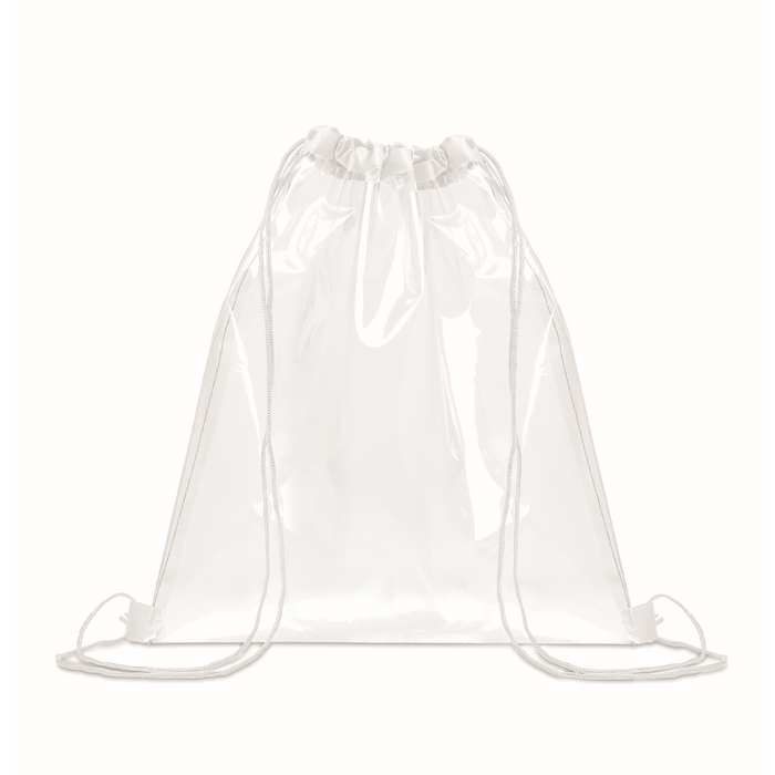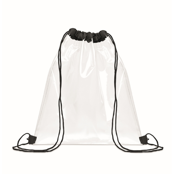 Saco transparente de cordão feito de EVA e PVC. Cordão de poliéster para fecho rápido e cómodo. O corpo translúcido permite identificar o conteúdo com um simples olhar, facilitando o controlo em acessos, eventos e zonas comuns. Leve e fácil de transportar, é prático para levar pertences, documentação ou material promocional sem adicionar volume. Os cordões funcionam também como alças tipo mochila para uso diário simples. Escolha útil para campanhas em feiras, concertos ou ações de boas-vindas.