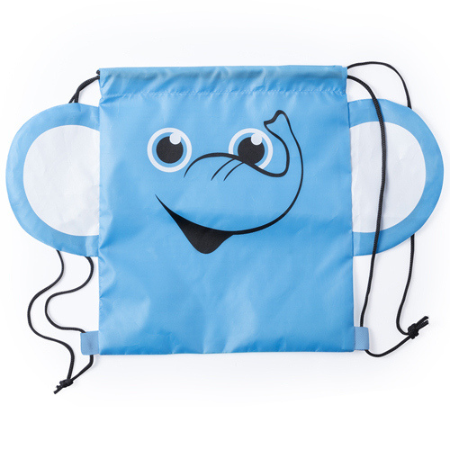 Mochila dobrável com cordas e que está disponível com vários desenhos de animais. Uma excelente opção para que os mais pequenos as levem em excursões.