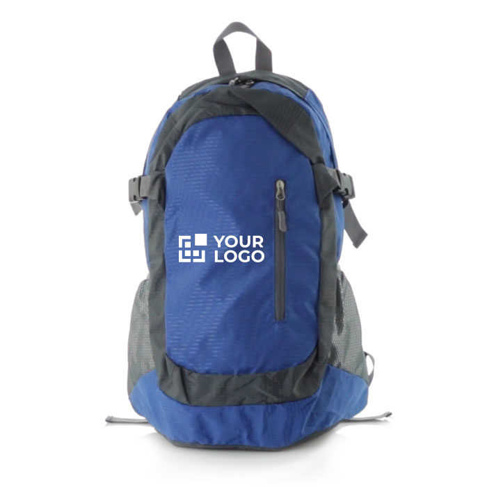Mochila técnica de uma combinação resistente de poliéster 210D e ripstop, de uma atrativa combinação de cores. Com duplo fecho de correr e pega metálica e bolsos frontais. Com reforços de nylon ajustáveis nos fechos e cantos reforçados. Costas com acolchoamento ergonómico, alças de ombro acolchoadas com tiras ajustáveis e fecho de clique.