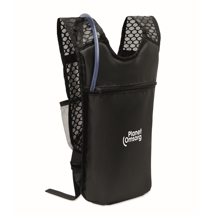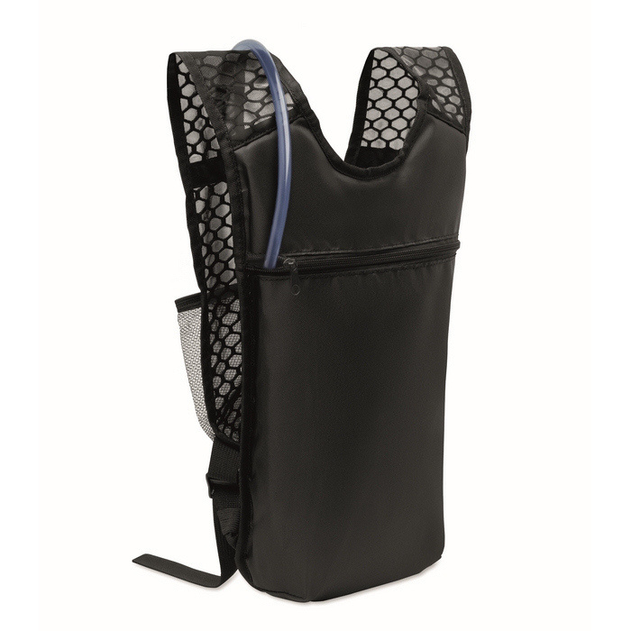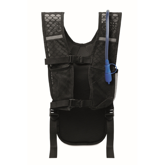 Mochila desportiva de PU e nylon 420D com acabamento repelente à água e detalhes de malha para melhorar o arejamento. Inclui bolsa de hidratação de EVA de 1500 ml com tubo de PVC e fecho, pensada para se hidratar sem necessitar de parar. Design leve e resistente para uso contínuo. Compartimento principal prático e ajuste cómodo para levar o essencial. Opção adequada para equipar o pessoal, eventos desportivos ou ações de marca no exterior.