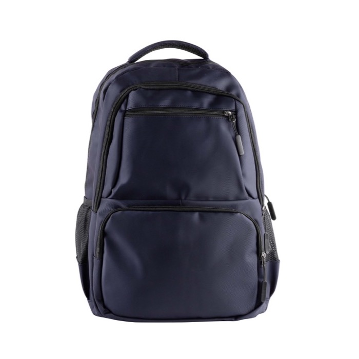 Mochila fabricada em PU 210D, com compartimentos frontais e laterais.
