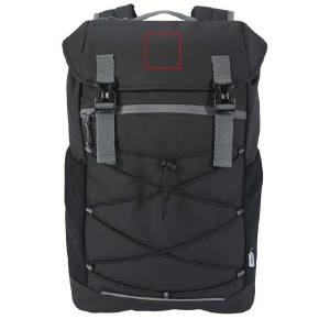 Mochila para PC, impermeável, feita de materiais reciclados. Compartimento para PC de 15,6” com cordão e fivelas. Vários bolsos, incluindo um frontal com fecho de correr e cordões. Rebordos refletores e costas acolchoadas. Capacidade: 23 L. Sem PVC.