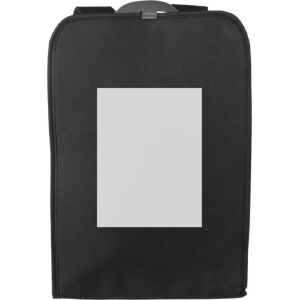 Mochila de tecido Oxford impermeável de poliéster RPET (600D) com frente plana completa. A mochila tem um bolso para laptop (15 polegadas) e um bolso de malha dentro com alças ajustáveis. Inclui alça de PU e fecho magnético de PU.