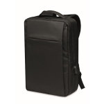 Mochila para portátil (16 polegadas) em RPET (300D) com detalhes em 210D. Interior com vários bolsos, bolso para portátil com fecho de velcro, um bolso frontal com fecho de correr. Abertura com USB-A na parte lateral.