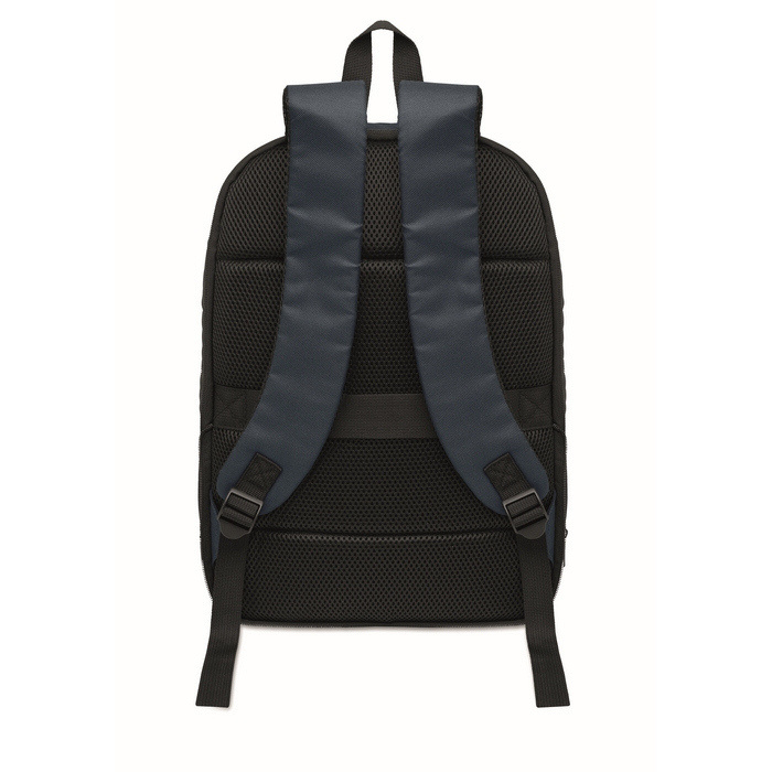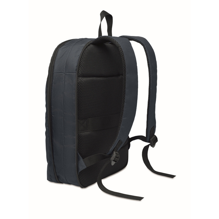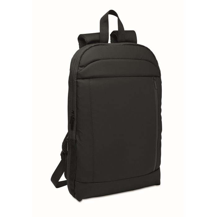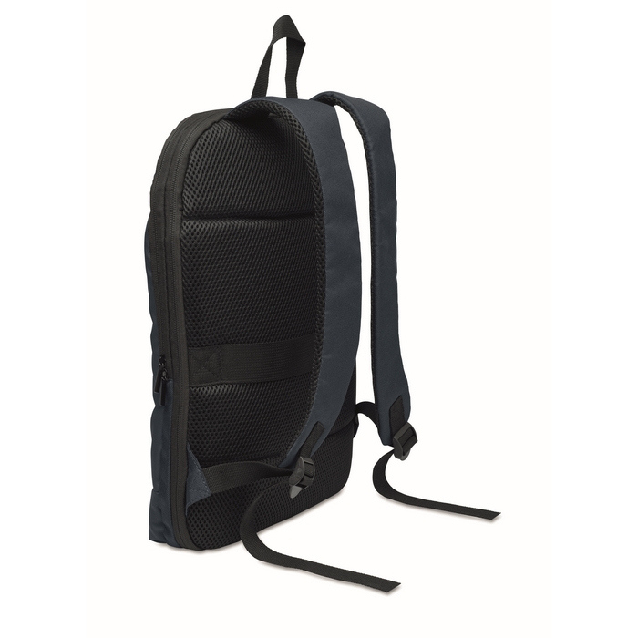 Mochila expansível de rPET 600D para portátil de 16'' com revestimento de PU na frente e forro de poliéster rPET. Bolso oculto com fecho de correr e compartimento acolchoado para portátil e compartimento frontal. Verso de rede e manga para bagagem.
