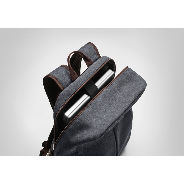 Mochila para portátil em poliéster 360D com compartimento para portátil até 15'' com fecho de correr. Dispõe de um compartimento principal, com capacidade para pastas, documentos e outros gadgets e objetos pessoais. Dispõe de compartimento para portátil e junto a ele um adicional para um tablet, na parte posterior do compartimento principal, um bolso almofadado para garantir a proteção contra os choques. O seu exterior sóbrio e funcional, dispõe de uma costura central, dois bolsos laterais com rede para guardar aquilo que necessita mais à mão, e um bolso frontal com fecho de correr. As alças e a parte traseira da mochila, que dispõe de uma banda de fixação para o trolley, são almofadadas, o que garante a perfeita fixação e conforto na sua utilização. Uma mochila perfeita como presente corporativo já que pode ser personalizada em diferentes zonas, com diferentes técnicas de impressão e com possibilidade de imprimir até a cores. A sua qualidade tornou-a numa das mais vendidas da coleção.