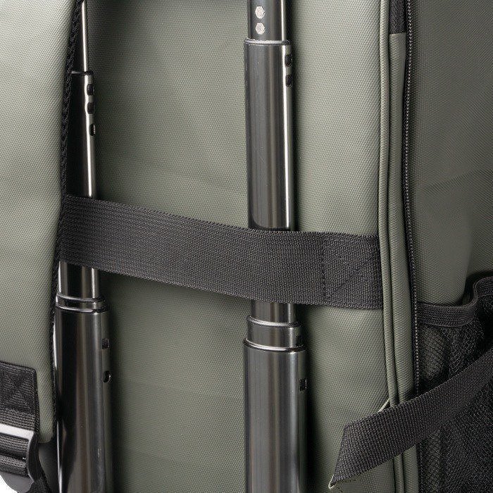 - Bolsos frontais com fecho de correr e laterais em rede elástica
