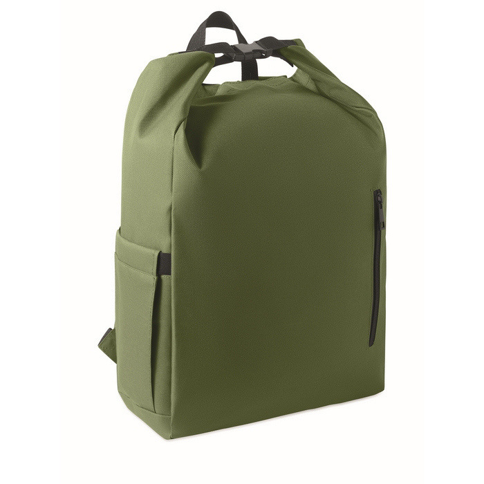 Mochila roll-top rPET para portátil com bolso lateral elástico 15''