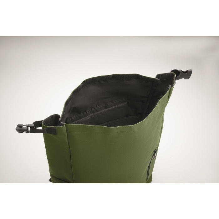 - Mochila roll-top de rPET 600D com compartimento de 15 polegadas