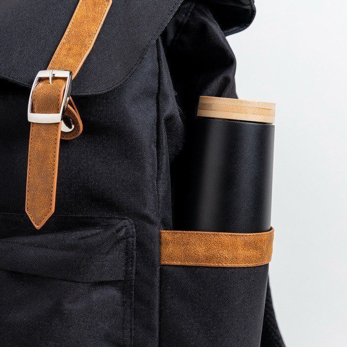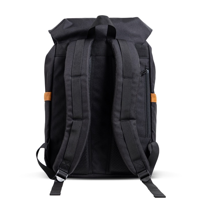 Mochila para portátil até 15,6", de rPET resistente à água. Sustentável e refinada, combina aparência casual com compartimento acolchoado, fechos magnéticos, bolso exterior prático e detalhes de PU. Ótima para o quotidiano profissional ou pessoal, assegurando organização, conforto e estilo.