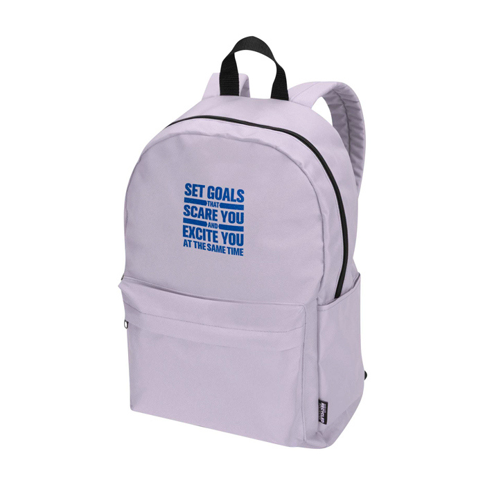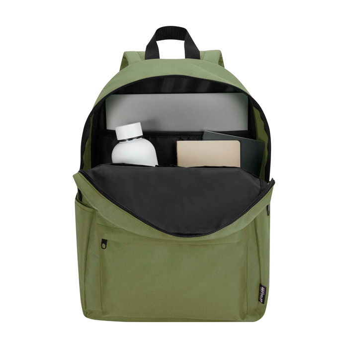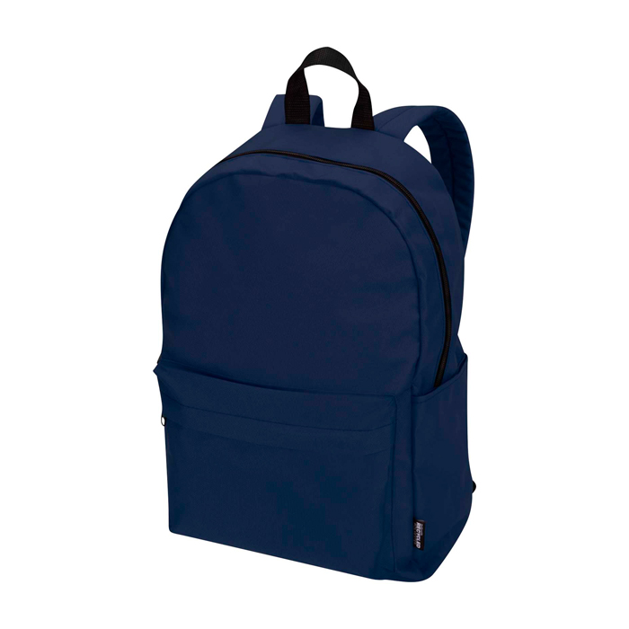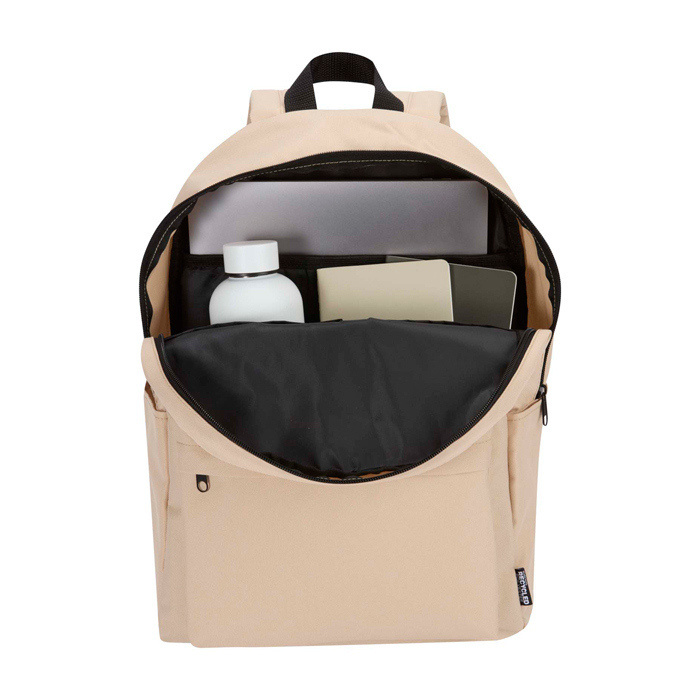Mochila para portátil de 16 L, feita de poliéster reciclado com certificação GRS repelente à água. Dispõe de capa acolchoada para portáteis até 14'', bolsos organizadores interiores, dois bolsos laterais e bolso frontal com fecho de correr para acesso rápido.