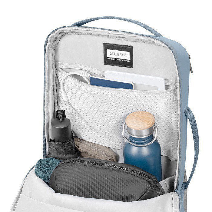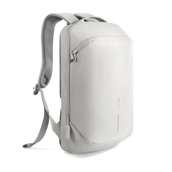 Mochila de nylon reciclado, leve e duradoura, concebida para deslocações diárias com uma silhueta fina e estruturada. O tecido repelente à água e fechos de correr revestidos de pele sintética protegem os documentos e dispositivos em trajetos urbanos. Inclui bolso de acesso rápido e compartimento independente para portátil de 16" para manter o conteúdo ordenado. As asas superiores e laterais permitem-lhe levá-la como lhe for mais conveniente, de acordo com a situação. Opção prática para ações de branding interno, eventos e uso no escritório com o seu logo.