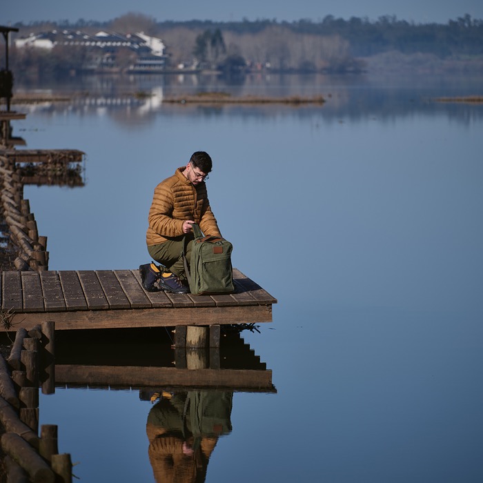 A nossa mochila de 27L feita de algodão reciclado 230g/m2 com revestimento de cera. Inclui 2 compartimentos principais, 1 bolso frontal escondido e um pequeno bolso com fecho atrás da pega. No interior, encontrará um bolso acolchoado para o portátil. Completo com uma bolsa individual de algodão reciclado.