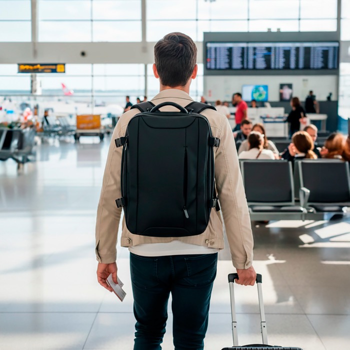 Mochila em RPET com alça para carrinho e bolso oculto 22L