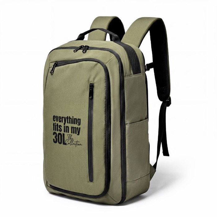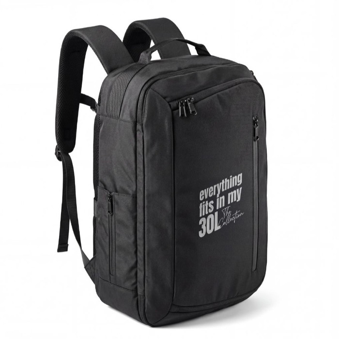 Mochila em RPET com alça para carrinho e bolso oculto 22L