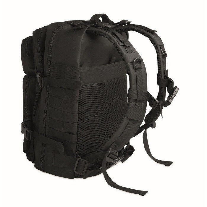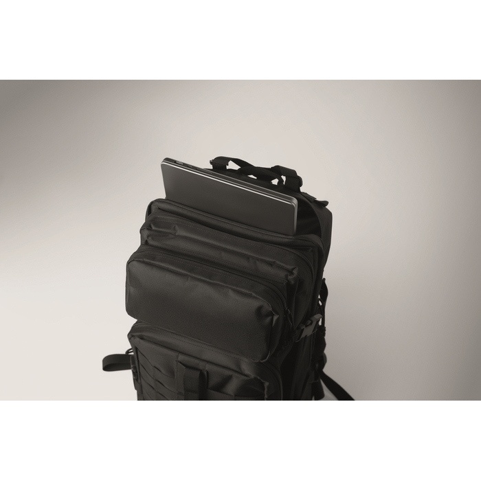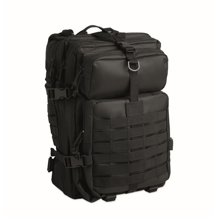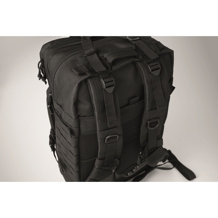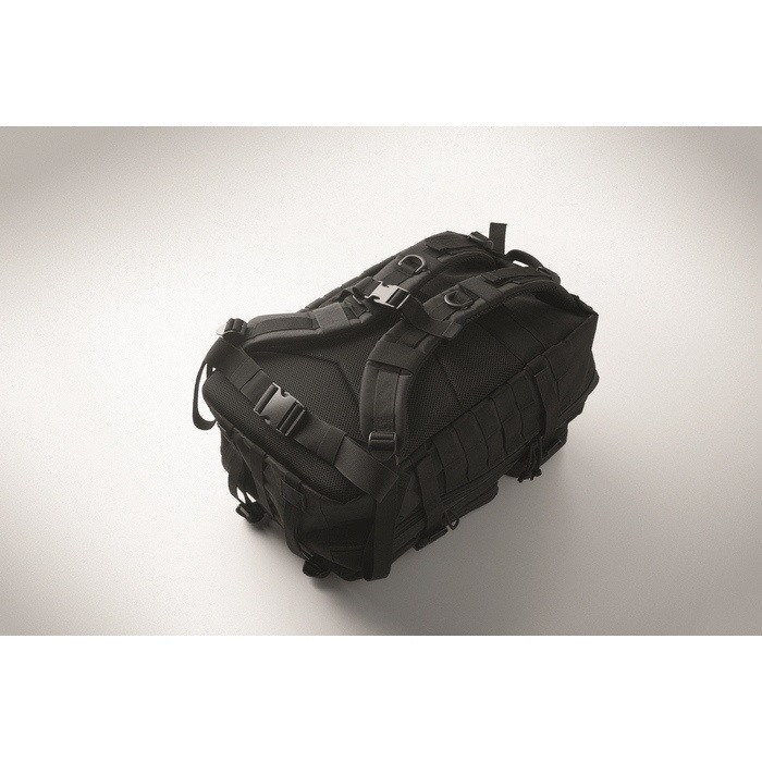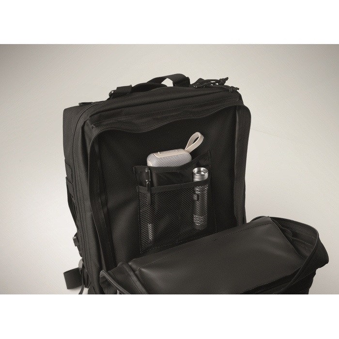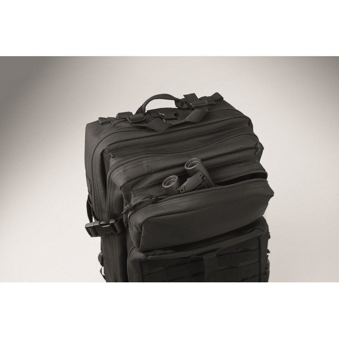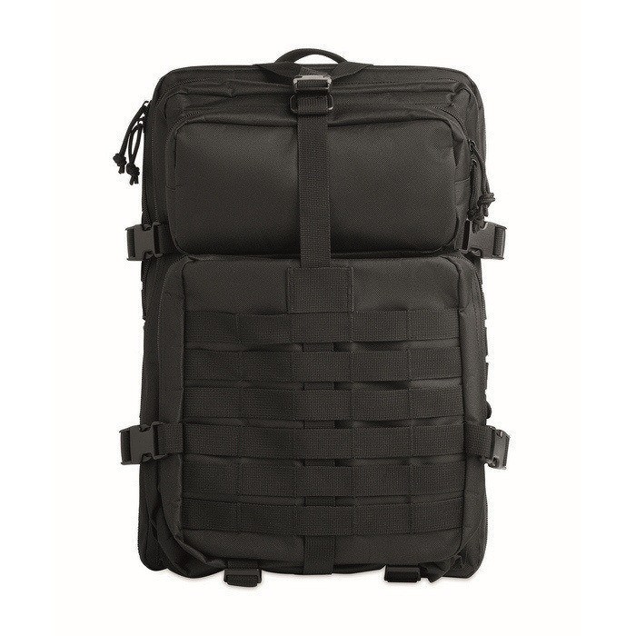 - Mochila 50 L de rPET 600D com compartimentos múltiplos