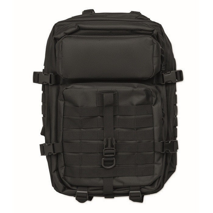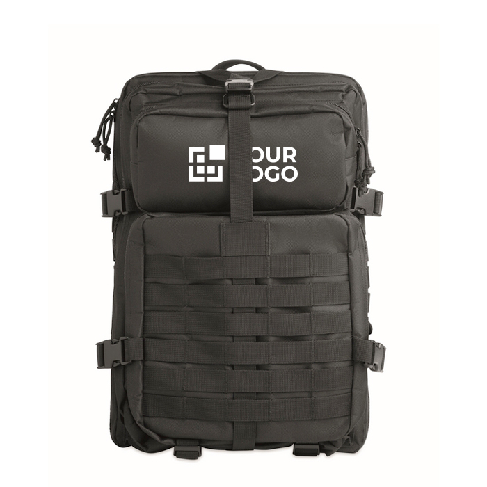 Mochila de rPET 600D com capacidade de 50 L, pensada para transportar material de trabalho ou bagagem com boa organização. Contém bolso acolchoado para portátil e vários compartimentos para separar documentação, acessórios e artigos pessoais. Dispõe de bolsos frontais com fecho de correr para ter o essencial à mão. As alças e costas acolchoadas facilitam o uso diário e o cinto de anca melhora a distribuição de peso. Opção prática para kits de boas-vindas, eventos ou equipas em movimento.