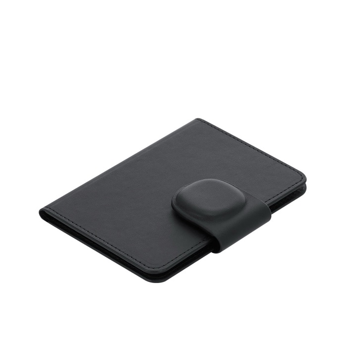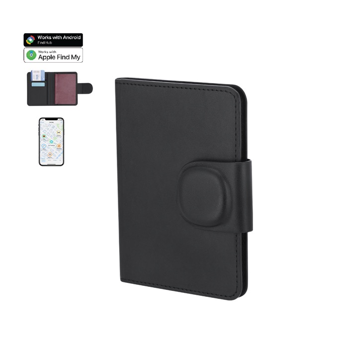 Bolsa para passaporte de pele sintética com localizador inteligente incluído, concebida para viagens de empresa e deslocações frequentes. Inclui ligação dupla compatível com Encontrar da Apple e Android Find Hub para rastrear a localização em tempo real com rapidez e precisão. O fecho magnético mantém a documentação protegida durante o trajeto. Dispõe de pilha de botão, pronta para o começar a utilizar logo. Opção prática para ações de marca em feiras, incentivos de vendas ou boas-vindas a colaboradores.