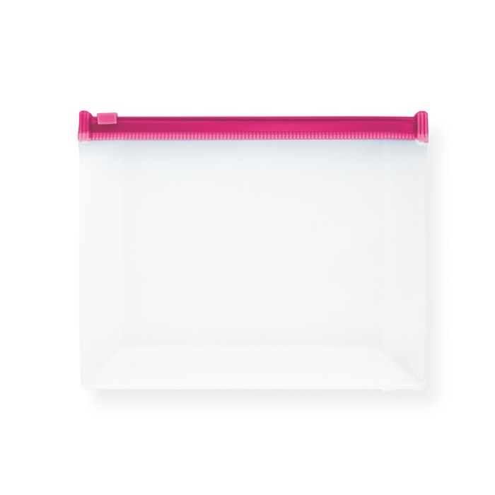 Nécessaire hermético em material EVA com fecho de correr. Apropriado para viagem de avião.