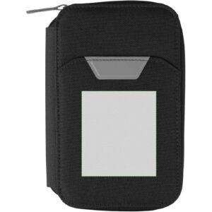 Carteira de viagem com proteção RFID. Inclui suporte para telemóvel e vários compartimentos. Uma forma segura de transportar pequenos objetos essenciais.