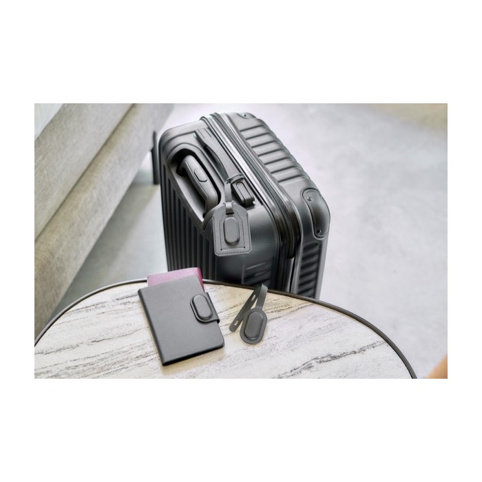 "Porta-passaportes em PU reciclado de capa dura com fecho magnético e localizador Apple FindMy incorporado na aba. Inclui três compartimentos internos para organizar documentos e cartões. Utiliza ""Impression"" como nome do dispositivo e inclui o logótipo Impression para registo de ID. Embalado individualmente numa caixa de papel kraft."