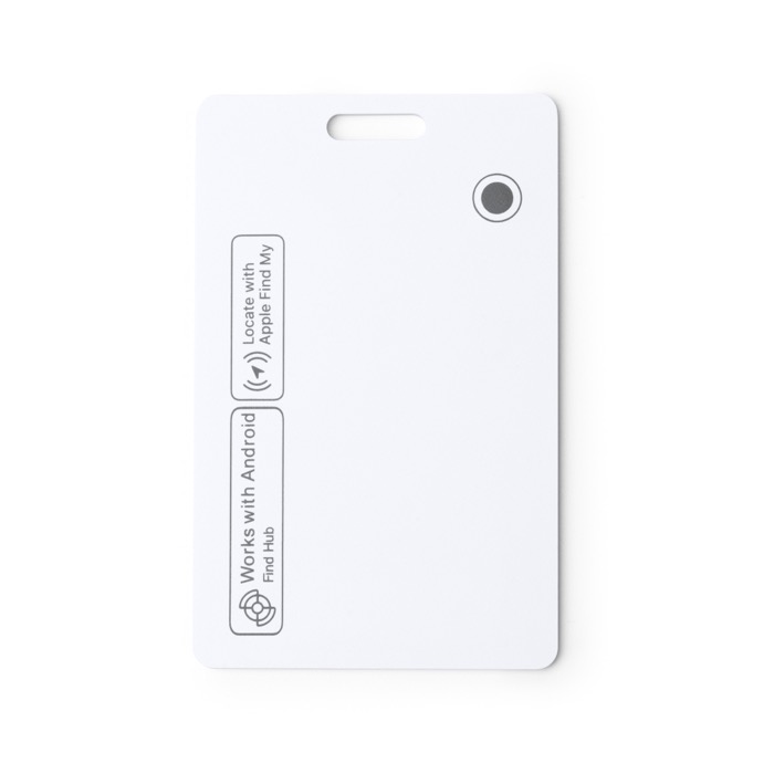Localizador anti-perda em plástico em formato de cartão, pensado para levar na carteira, mochila ou porta-crachá sem ocupar espaço. Resiste a salpicos e funciona com iOS e Android através de aplicação móvel e ligação Bluetooth, facilitando o seu controlo no dia a dia. Integra uma função de pesquisa com sinal acústico para o localizar rapidamente quando deixa de estar à vista. Recarrega com carregadores de carregamento sem fios, evitando cabos e simplificando a logística. Útil para identificações internas, entregas em eventos ou ações de fidelização.