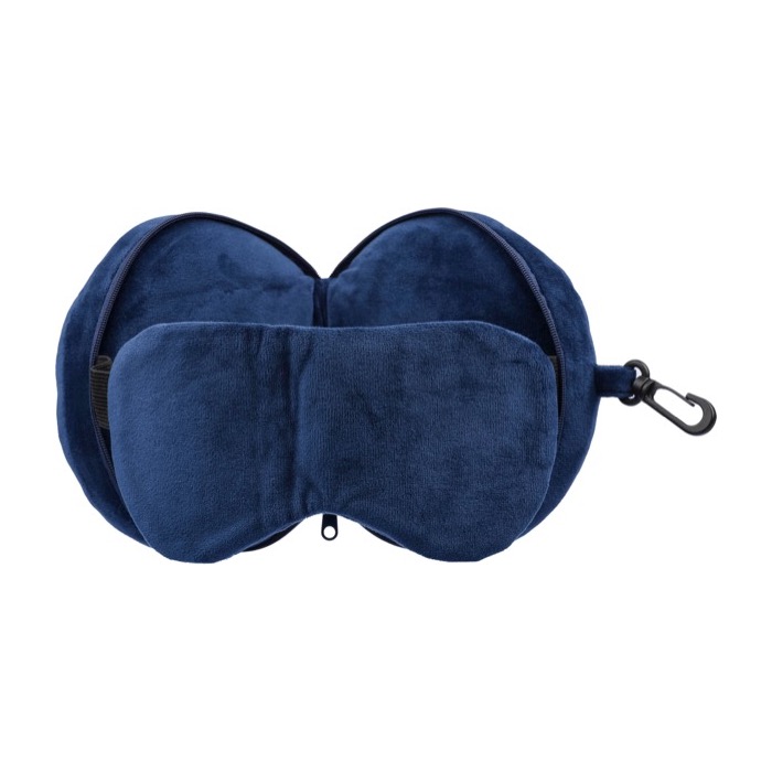 Suavidade em forma de máscara de olhos para um ótimo descanso com esta almofada de viagem. Com fecho de correr e mosquetão, transforma qualquer trajeto.