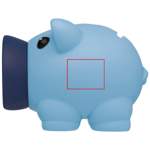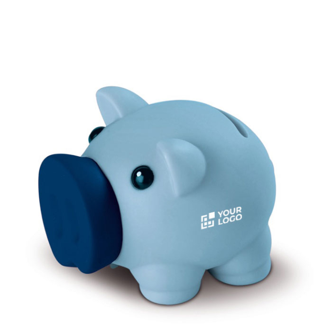 Pequeno mealheiro personalizável de porquinho, fabricado em material sintético, ideal para ensinar a poupar ou como elemento decorativo em qualquer secretária.