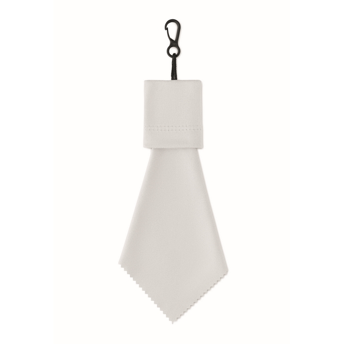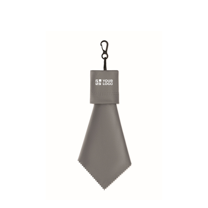Pano de limpeza de rPET, projetado para uso diário em óculos, ecrãs e superfícies delicadas. Inclui uma bolsa de material autoadesivo que ajuda a mantê-lo protegido e no lugar, e um gancho de pendurar feito de PP, prático para balcões, carrinhos ou zonas de trabalho. Formato cómodo para levar na carteira, mochila ou estojo sem ocupar espaço. Escolha útil para ofertas em feiras, packs de boas-vindas ou material de atenção ao cliente.