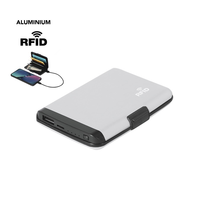 - Porta-cartões powerbank de alumínio com proteção RFID integrada