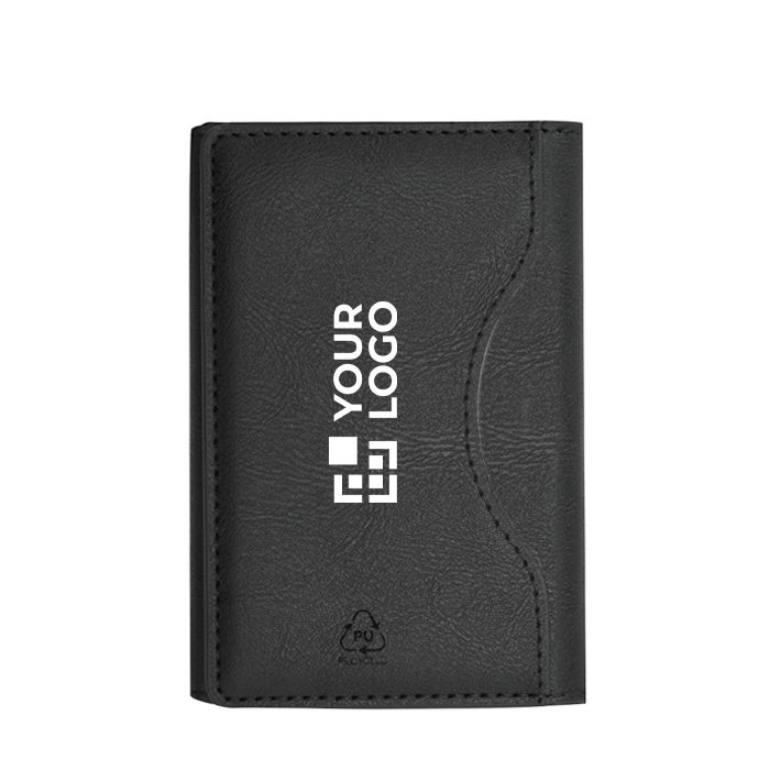 Porta-cartões de suporte de pele sintética reciclada com formato pensado para o quotidiano no escritório e visitas comerciais. Inclui porta-cartões multifuncional com 6 compartimentos para organizar cartões, credenciais ou notas pequenas sem ocupar espaço. O fecho dobrável magnético ajuda a manter o conteúdo acessível e protegido. Dispõe de sistema de fixação móvel magnético para o colocar e retirar com rapidez de acordo com o que precisar. Escolha prática para ações de RH, feiras e brindes empresariais.
