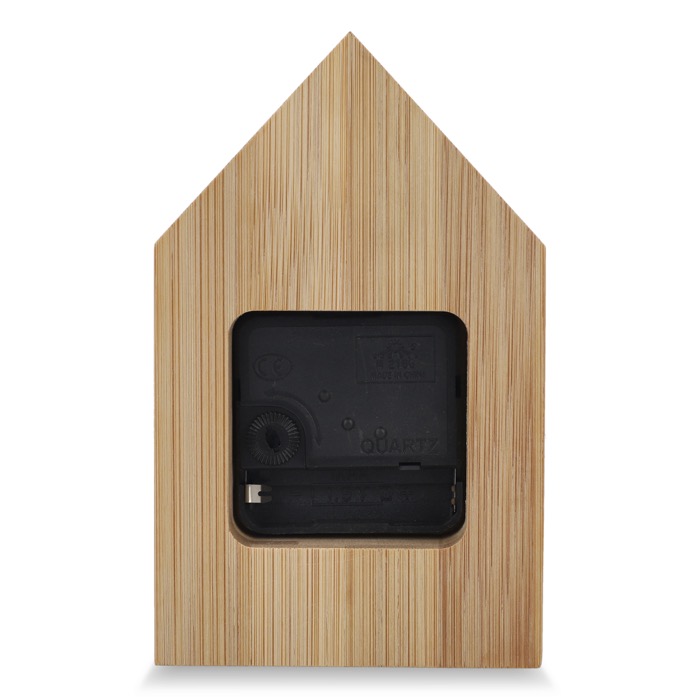 Relógio de cabeceira feito de bambu em forma de casa para personalizar