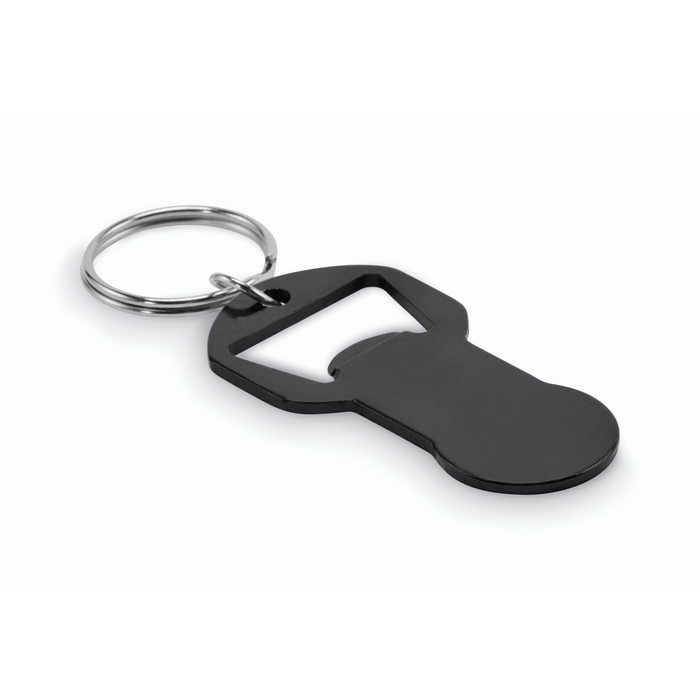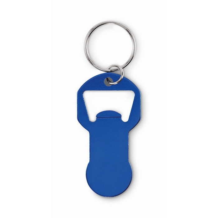 Porta-chaves abre-caricas de alumínio reciclado, ficha para carrinho