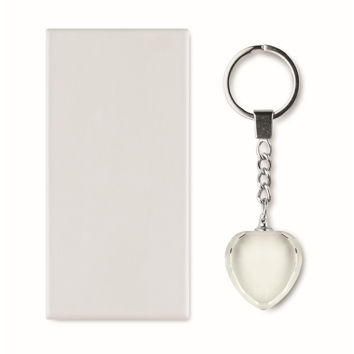 Porta-chaves de vidro em forma de coração. Entregue em caixa-oferta.