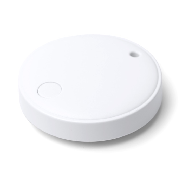 Localizador anti-perda em plástico com proteção contra a água e porta-chaves integrado, para o levar nas chaves, mochilas ou pastas. Liga-se a telemóveis iOS e Android através de uma app e ligação Bluetooth, facilitando a localização de objetos à distância. Funciona a pilhas e emite um sinal sonoro para o localizar rapidamente quando não está à vista. Inclui argola metálica e fita de transporte para uma utilização cómoda no dia a dia. Adequado para ações de marca em feiras e para equipas comerciais.