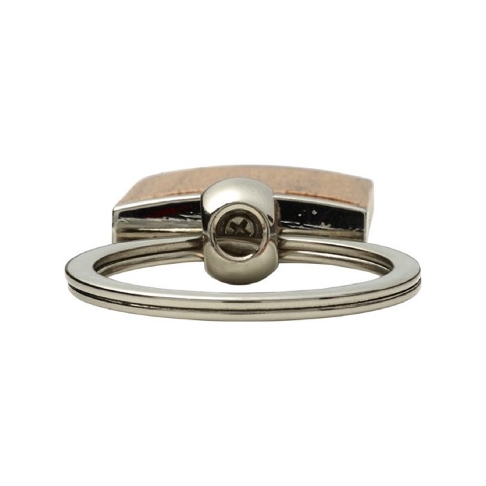 Porta-chaves de metal e madeira, com anel de aço inoxidável. Apresentado individualmente em um polybag.