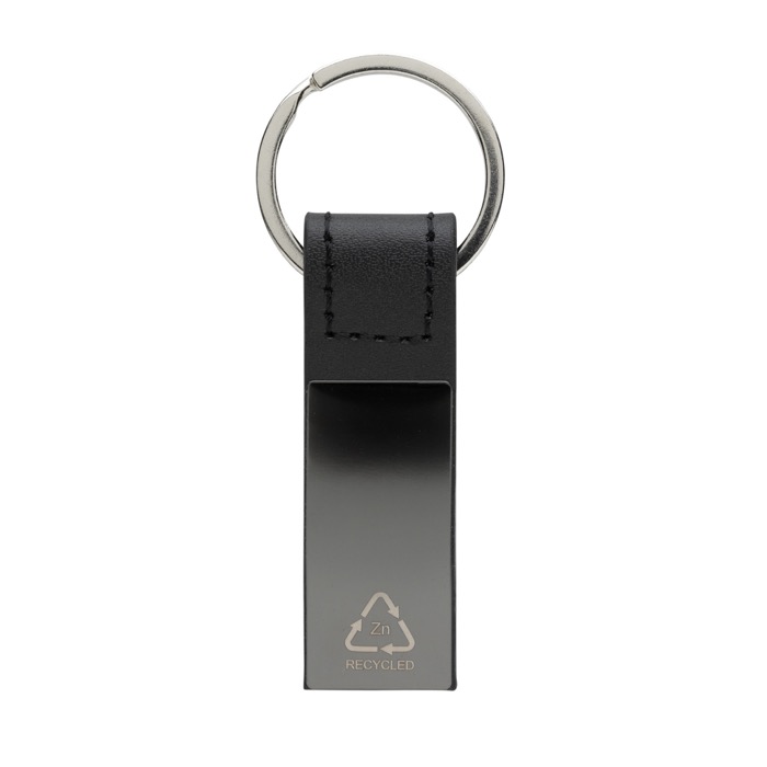 Porta-chaves de luxo fabricado em liga de zinco reciclado RCS e PU. Conteúdo reciclado total: 67%, com base no peso total do artigo. A certificação RCS garante uma cadeia de fornecimento totalmente certificada de materiais reciclados. Apresentado em bolsa de papel.