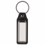 Porta-chaves retangular de metal com mosquetão e couro sintético