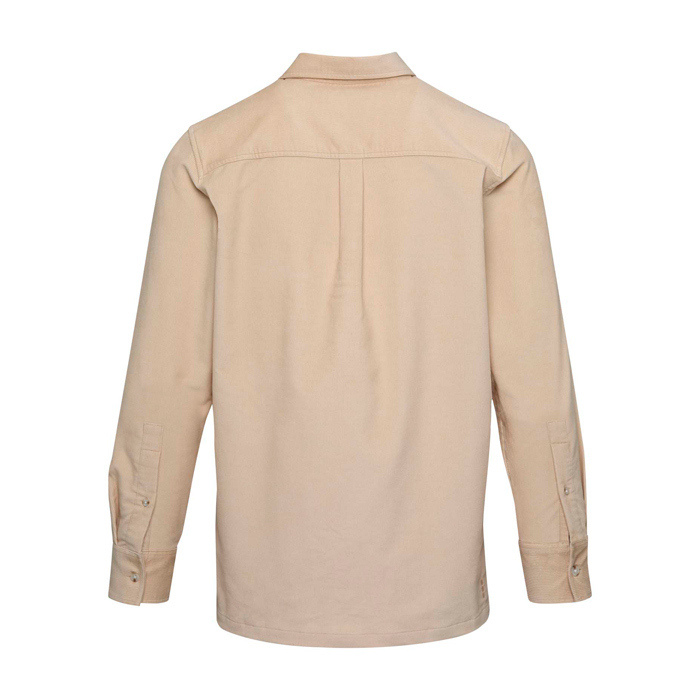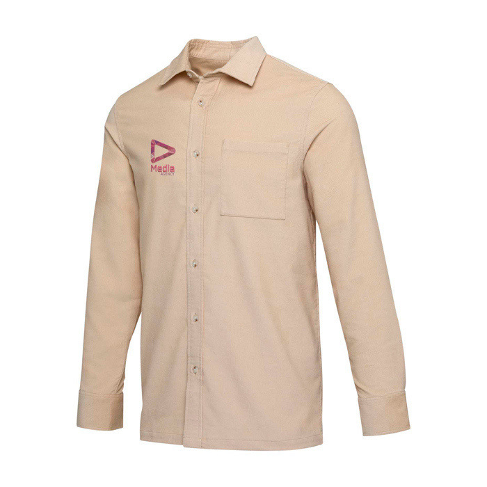 Camisa unissexo de bombazine macia e resistente, pensada para uso contínuo em locais de trabalho e quotidianos. O corte reto dá-lhe um caimento folgado mas de bom ar, facilitando a combinação com outras peças sem renunciar a uma imagem cuidada. O tecido canelado fino proporciona uma textura reconhecível e sensação aconchegante enquanto mantém boa transpirabilidade e liberdade de movimento durante o dia de trabalho. Funciona aberta ou fechada de acordo com o contexto. Opção prática para uniformes corporativos, ações de merchandising e vestuário de equipa em eventos.