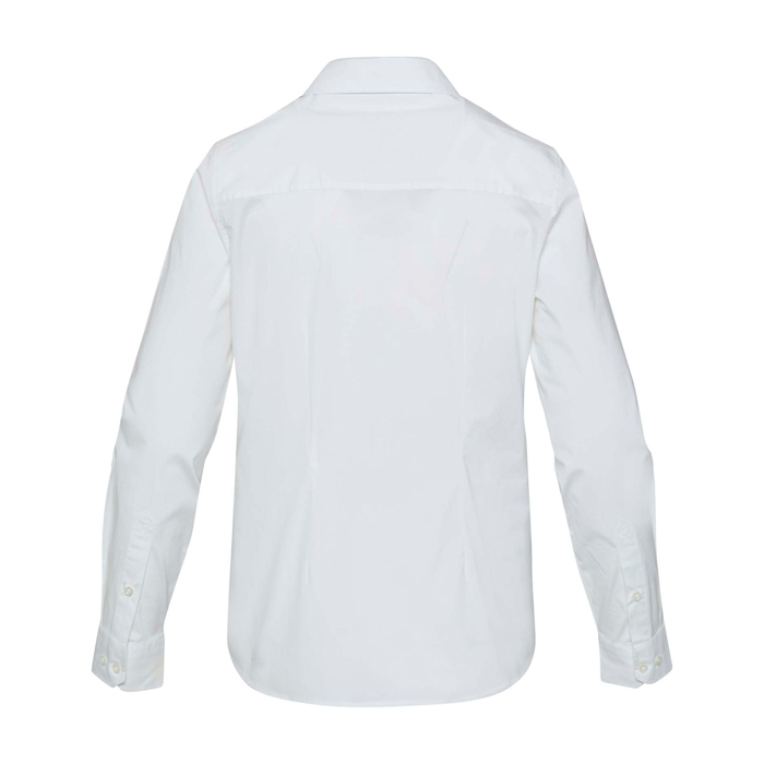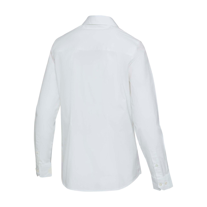 Camisa de popelina para mulher feita de algodão de alta qualidade, desenhada para uso diário cómodo e airoso. O tecido é dotado de mais elasticidade para acompanhar o movimento sem perder a forma e o acabamento macio mantém um aspecto cuidado durante o dia de trabalho. O corte reto com pinças na frente e verso define a silhueta sem apertar. É complementada pela gola reta intemporal, fácil de combinar em ambientes profissionais e ações de imagem corporativa.