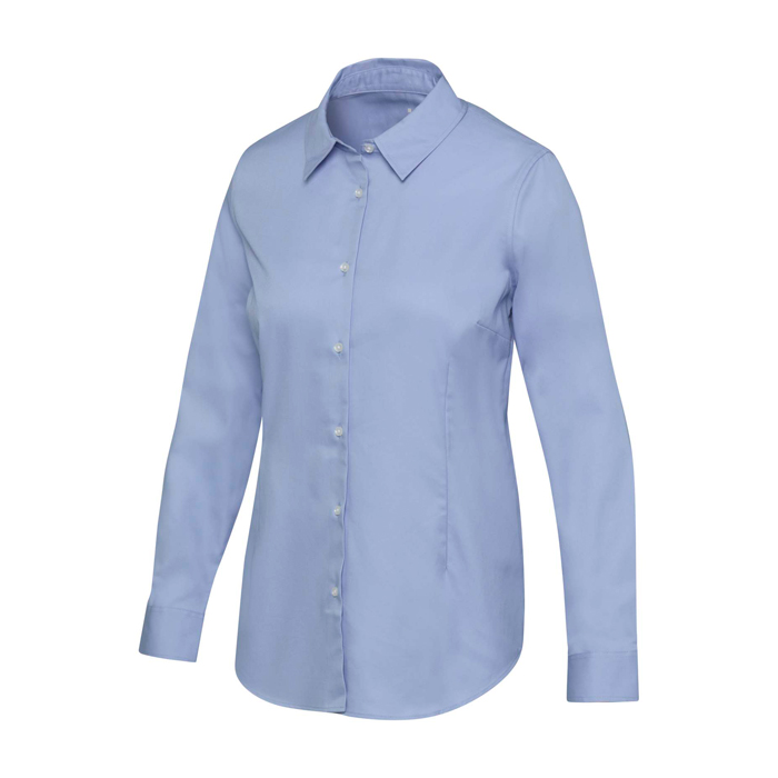 Camisa para mulher de sarja de algodão com toque macio e acabamento levemente brilhante para uso diário. O corte reto incorpora pinças na frente e verso para definir a silhueta sem sacrificar conforto em dias de trabalho longos. Dispõe de gola aberta para um ar atual e fácil de combinar com visuais de escritório ou mais informais. Devido à gramagem de 185 g/m2, conserva bom aspecto e caimento. Opção adequada para uniformes corporativos e ações de marca com personalização.