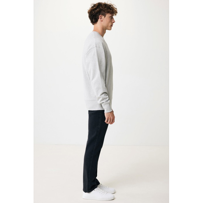 Camisola de gola redonda unisex, fabricada em 100% algodão, 50% reciclado e 50% orgânico, com 340g/m². A camisola tem ombros caídos, decote redondo, mangas mais largas e acabamento em canelado 2x2. O interior é de lã escovada suave para maior conforto. O uso de materiais de tecido genuinamente orgânicos e reciclados, assim como as alegações de impacto ambiental, são garantidos através do uso da tecnologia de blockchain e do rastreador físico disruptivo AWARE™. Ao digitalizar o código QR, terá acesso a um passaporte digital dedicado do produto. 2% dos lucros de cada produto vendido serão doados à Water.org. Este produto possui a certificação OEKO-TEX® STANDARD 100 2303045 pela Centexbel. Devido à natureza dos fios reciclados, podem ocorrer impurezas e variações de cor.