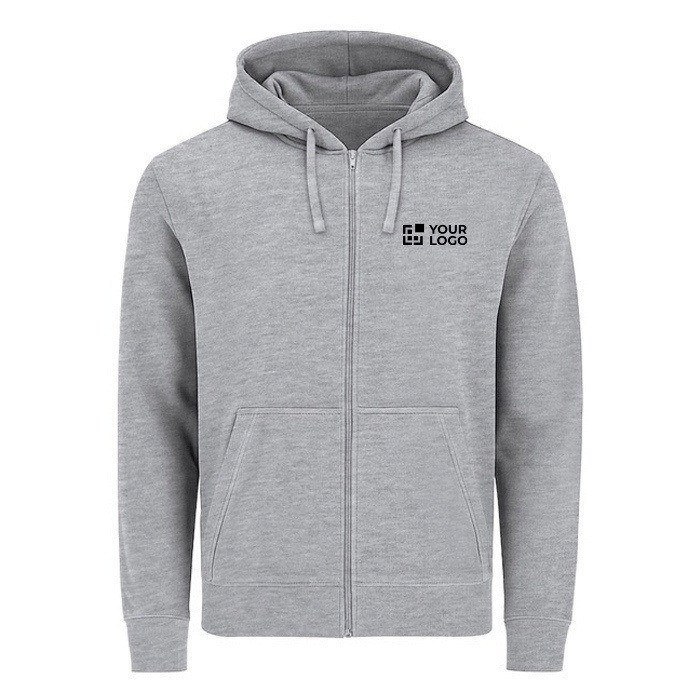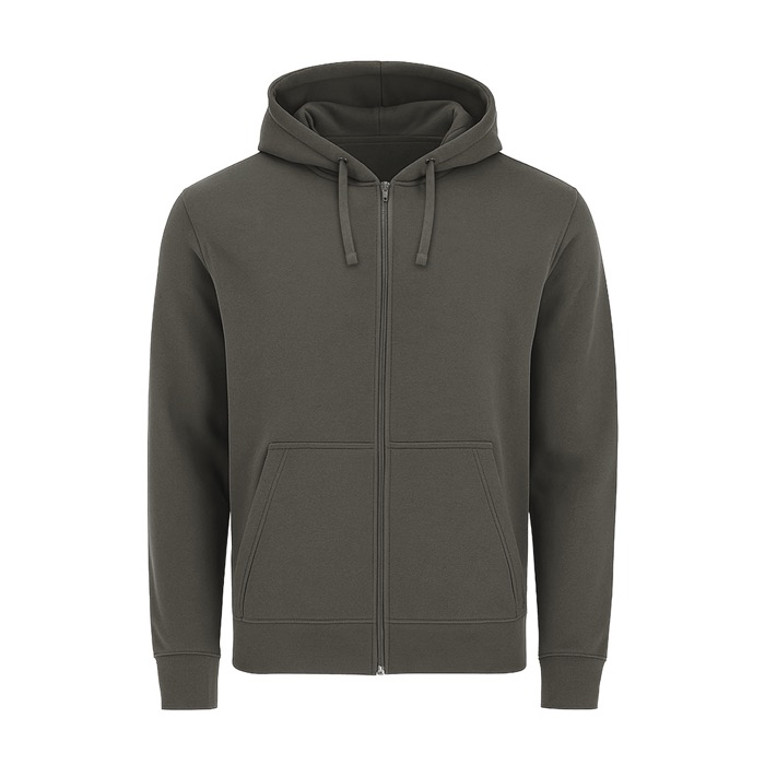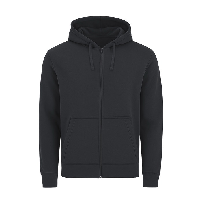 Camisola unissexo com capuz forrado de tecido duplo a condizer. Feita de algodão e poliéster de felpa cardada macia 280 g/m2. Fecho de correr frontal completo a combinar. Com cordão ajustável e ilhós metálicos a condizer. Bolso tipo canguru. Tapa-costuras na gola. Punhos e cintura de ponto canelado 1 x 1 com elastano para melhor ajuste e conforto.