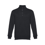 Sweatshirt (unissexo) em 50% algodão e 50% poliéster (320 g/m²) com interior cardado. Contém punhos e cós em Rib e fecho 1/4 à cor.