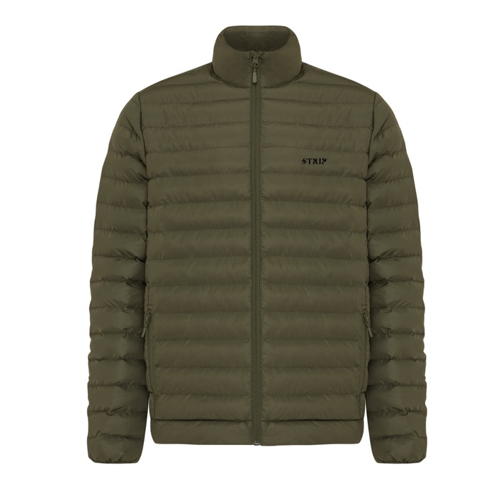Casaco acolchoado para homem confeccionado com 100 % poliéster reciclado pós-consumo e preenchido com acolchoado de poliéster 100 % reciclado. Dispõe de fecho de correr invertido na parte dianteira e bolsos com fecho nas costuras laterais. Todos os fechos contam com puxadores adicionais a condizer. Os punhos incorporam debrum elástico e as costuras interiores têm acabamento com debrum reciclado. Inclui impregnação repelente de água sem flúor nem PFAS. O uso de materiais reciclados genuínos e as declarações de impacto ambiental são validados através do rastreador físico AWARE™ e da tecnologia blockchain, que permitem aceder a um passaporte digital específico ao digitalizar o código QR. 2 % dos rendimentos de cada produto vendido é destinado à Water.org. Conta com certificação OEKO-TEX® STANDARD 100. Também disponível em tamanho para mulher.