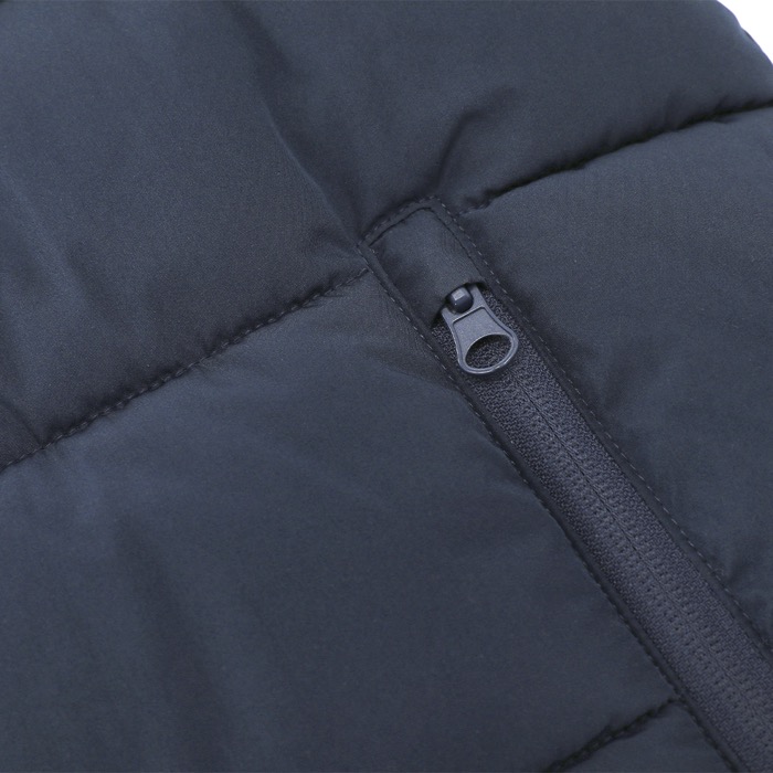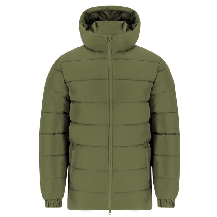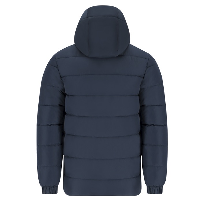 Parka unissexo acolchoada com capuz fixo e viseira incluída. Inclui fecho de correr frontal a condizer com puxador duplo e protetor de queixo. Punhos elásticos para um ajuste confortável e dois bolsos laterais com fecho de correr a condizer.
