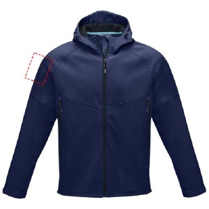 Casaco softshell reciclado, com certificado GRS, em tecido 80% RPET, 18% poliéster e 2% elastano, de 280 g/m2. impermeável (8000 mm) e respirável (2000 g/m²). Bolsos dianteiros com fecho invertido contínuo. Fecho central invertido. Punhos ajustáveis com fecho em velcro. Etiqueta principal em transfer serigráfico para maior conforto.
