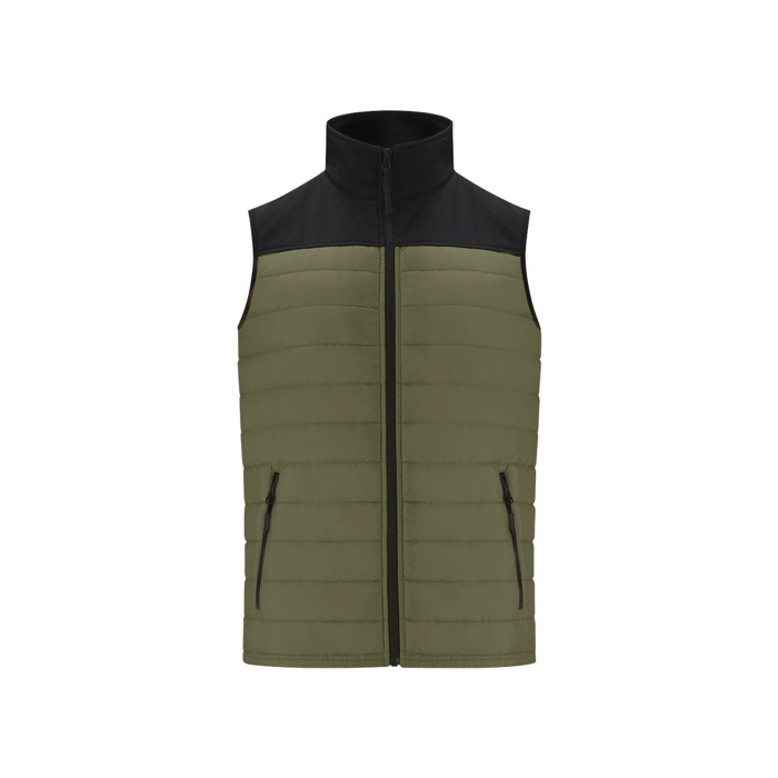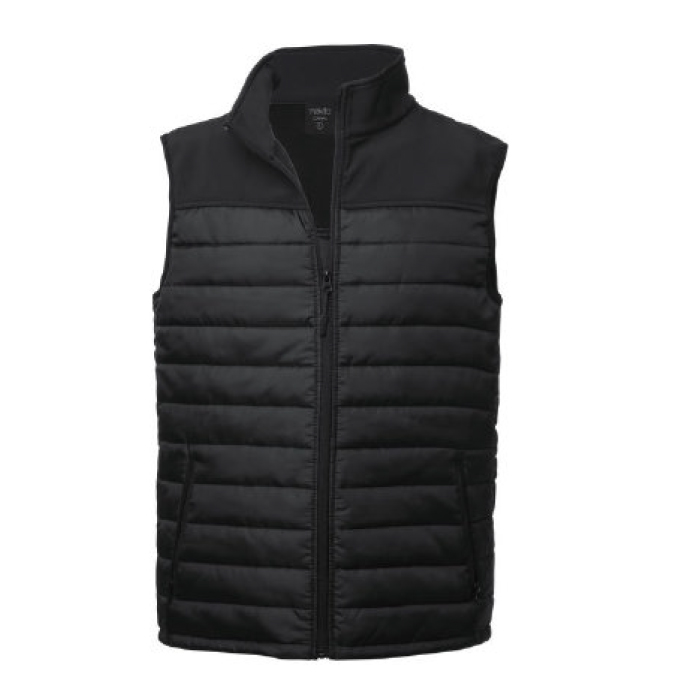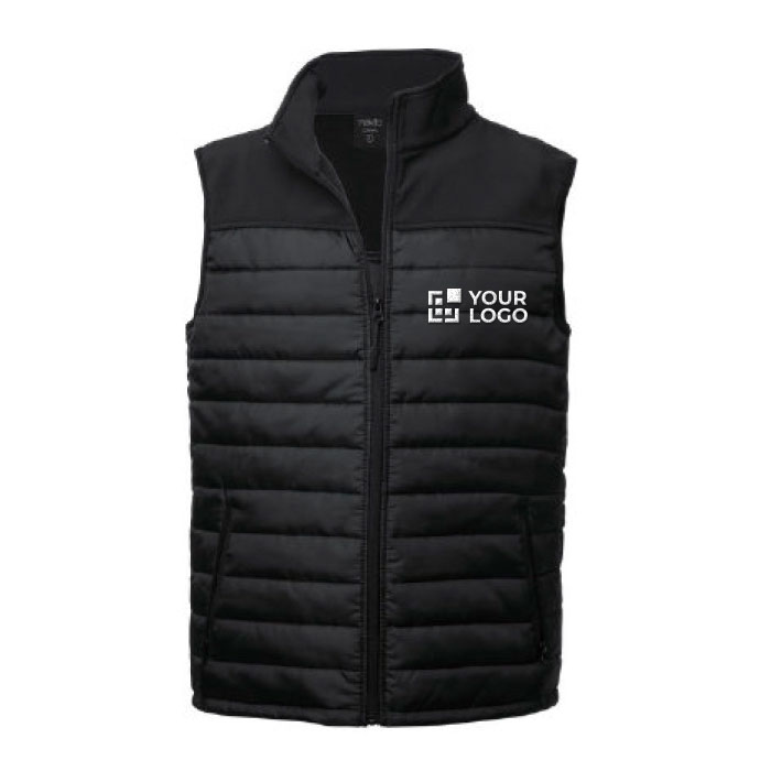 Colete impermeável e respirável em combinação de materiais softshell e poliéster. É uma das melhores opções para levar a qualquer excursão e, inclusive, para praticar desporto. De construção elegante em cor preta, com fecho de correr e bolsos laterais com fecho de correr e puxadores para fácil abertura. É uma peça que oferece um look casual e versátil, para o dia a dia. Além disso, está disponível nos tamanhos S a XXL e poderá imprimir o seu logótipo a várias cores.